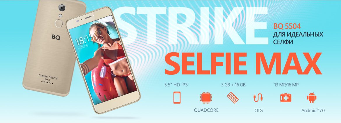BQ-5504 Strike Selfie Max одет в металлический корпус с эффектом браширования золотого цвета, РРЦ составит 9990 рублей.