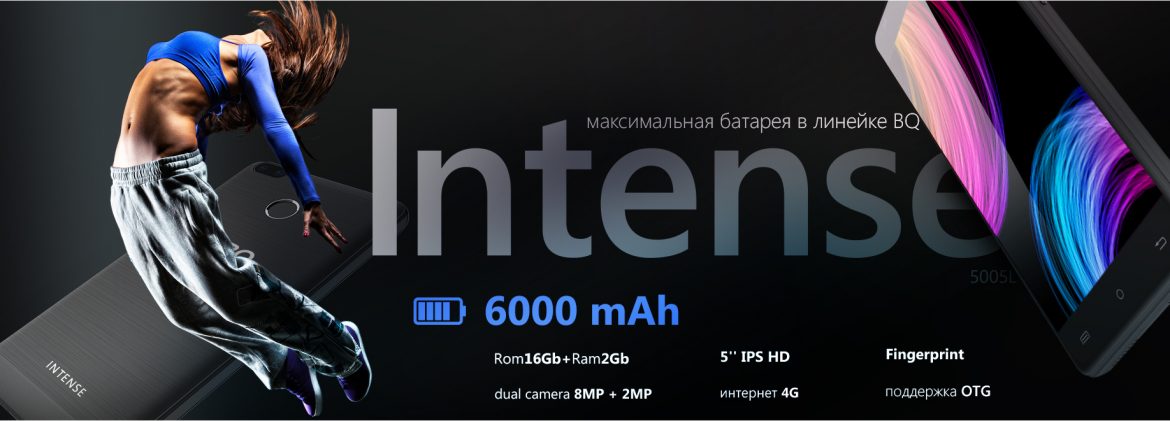 Смартфон с мощной аккумуляторной батареей представил Российский бренд BQ. Модель BQ-5005L Intense первая, получившая батарею емкостью 6000 мАч и продолжительностью работы 4 дня.