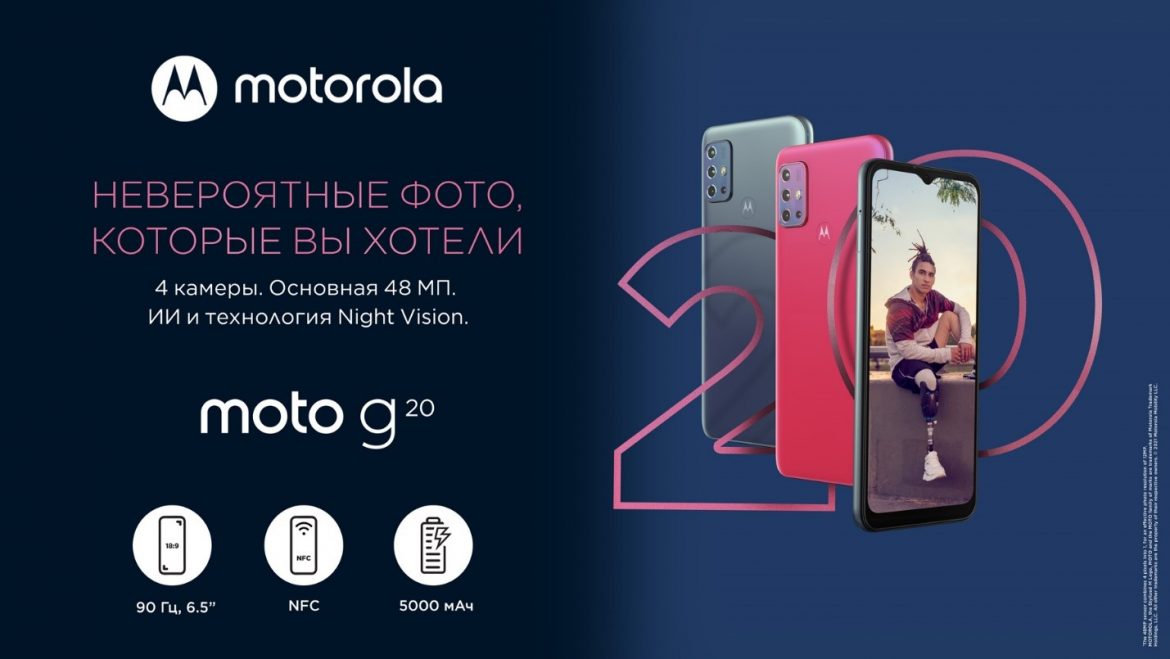 На российском рынке стартовали продажи новой модели смартфона Motorola moto g20, как и предыдущие модели линейки производитель делает упор на передовые возможности камеры. Рекомендованная розничная цена составит почти 12 тыс. рублей, а в период с 22 по 31 октября приобрести смартфон можно будет по сниженной цене в 9990 рублей.